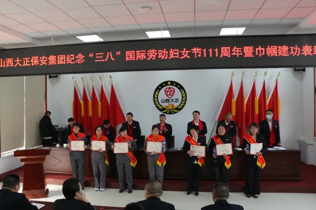 3月8日上午10時(shí),山西大正保安服務(wù)集團(tuán)有限公司隆重召開(kāi)紀(jì)念“三八”國(guó)際勞動(dòng)?jì)D女節(jié)111周年暨巾幗建功表彰大會(huì),集團(tuán)公司黨委書(shū)記、董事長(zhǎng)張躍生等公司領(lǐng)導(dǎo)班子出席會(huì)議,黨委委員、副總經(jīng)理王明生主持會(huì)議。受表彰的巾幗建功文明崗、巾幗建功標(biāo)兵代表和機(jī)關(guān)、城區(qū)部分女職工等100余人參會(huì)。