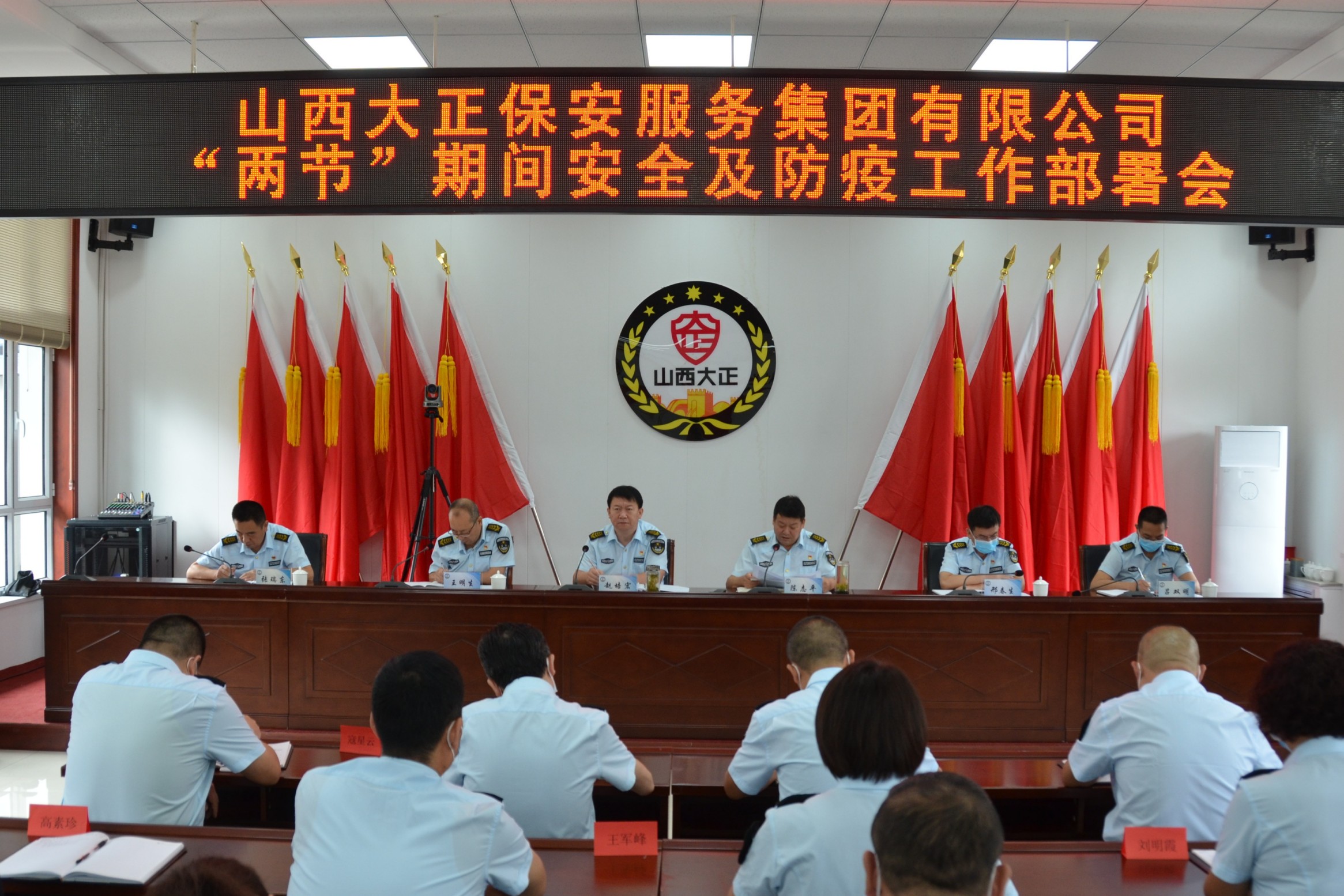 8月29日,山西大正保安服務(wù)集團有限公司“兩節(jié)”期間安全及防疫工作部署會在總部會議室召開。集團公司黨委副書記、總經(jīng)理趙培宏,黨委委員王明生、邢春生,董事呂雙明、張瑞東出席會議,黨委副書記、副總經(jīng)理陳志平主持會議。集團公司領(lǐng)導(dǎo)及機關(guān)各部、各子(分)公司管理人員60余人參會。
