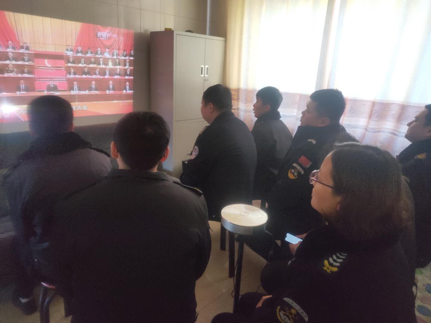 (守押靜樂(lè)中隊(duì)組織收聽(tīng)、收看大會(huì))
