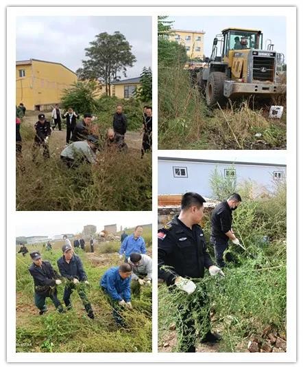 后勤部門的同志早已準(zhǔn)備好了鐮刀、鋤頭、鐵鍬,一大早,各部門組織員工按照劃分好的區(qū)域開始除草行動。剛進(jìn)場地看見有的野草長的非常茂盛,高過女同志,一時還真找不著下手之處,很快大家便找到了對付辦法,刀砍鍬鏟手拔,還有的幾個人合力拔大的雜草,男同志揮汗如雨,女同志也不甘落后,鉚足了勁頭,還有基層趕來助戰(zhàn)的保安員幫助“后進(jìn)隊伍”,勞動現(xiàn)場一片祥和景象。還有部分區(qū)域?qū)?ldquo;無主”狀態(tài),大家積極主動配合,合力圍剿,經(jīng)過全體職工的辛勤勞動,將近中午,大片大片的雜草被清理的干干凈凈。