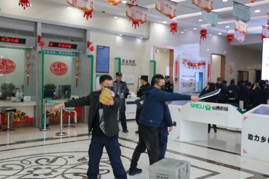 根據(jù)市公安局、銀保監(jiān)局、省市聯(lián)社關(guān)于2023年銀行業(yè)突發(fā)事件應(yīng)急預(yù)案演練文件精神,忻州市農(nóng)商銀行于4月1日按照演練方案,對防爆、防搶、防劫持人質(zhì)等15項突發(fā)事件應(yīng)急處置進(jìn)行演練,忻州市公安局內(nèi)保、巡特警支隊、直屬分局治安大隊、七一北路派出所及15余名公安干警和大正保安集團(tuán)20余名守押、安保隊員參加。