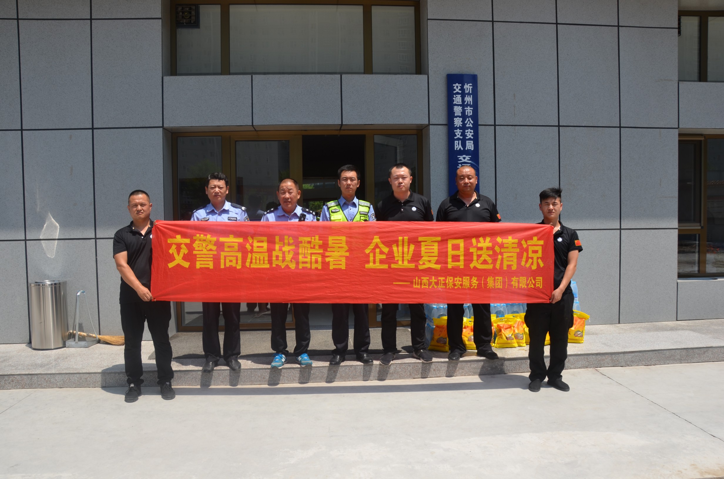 公司慰問人員對一線執(zhí)勤民警在高溫酷暑中堅守崗位,無私奉獻,全力保障市區(qū)道路安全暢通的工作精神表示由衷欽佩,各交警部門負責人對山西大正保安服務(集團)有限公司對交警部門工作的支持與配合表示感謝,表示將會立足本職,堅守崗位,為人民群眾的生命財產安全保駕護航,為城區(qū)道路的和諧穩(wěn)定貢獻自己的力量。