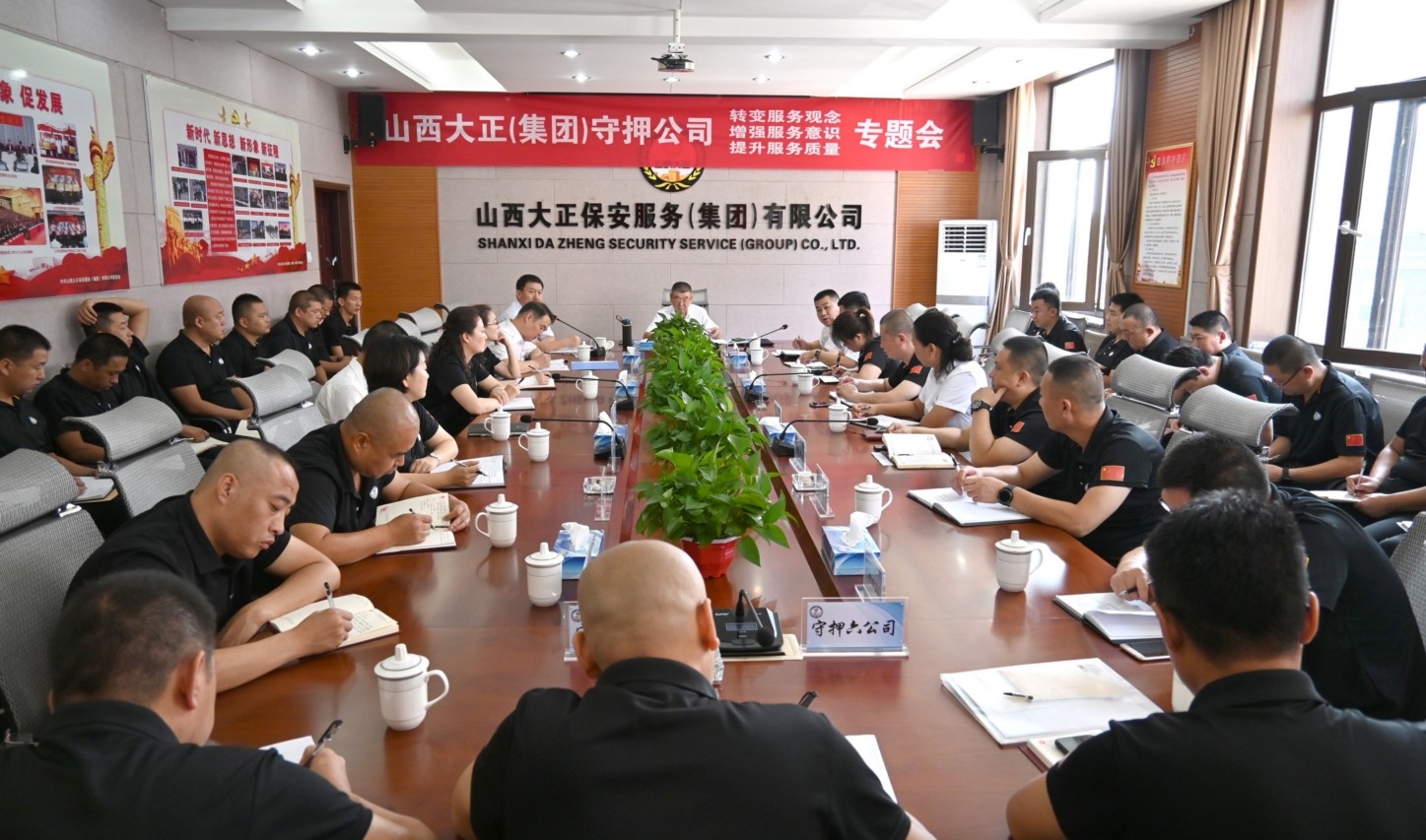 7月21日上午,山西大正(集團)守押公司召開轉(zhuǎn)變服務(wù)觀念、增強服務(wù)意識、提升服務(wù)質(zhì)量專題會議。集團公司黨委書記、董事長張躍生出席并做重要講話。黨委副書記、總經(jīng)理趙培宏主持會議。黨委委員、副總經(jīng)理王明生,總經(jīng)理助理、辦公室主任宋林兔,總經(jīng)理助理、守押公司副總經(jīng)理寇星云、守押公司其他領(lǐng)導(dǎo)及集團公司一室七中心負(fù)責(zé)人,基層分公司、中隊負(fù)責(zé)人四十余人參加。