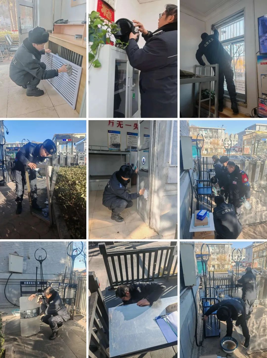 連日來,山西大正保安服務(wù)集團(tuán)公司各值勤崗點在保質(zhì)保量做好本職安保工作的基礎(chǔ)上,自覺從各自駐勤點綜合環(huán)境情況出發(fā),主動利用空余時間開展衛(wèi)生大掃除活動,著重對執(zhí)勤門衛(wèi)室、崗?fù)ぶ苓、窗戶窗臺、道桿道閘以及消防防暴器材等區(qū)域、設(shè)施進(jìn)行了清掃和整理。
